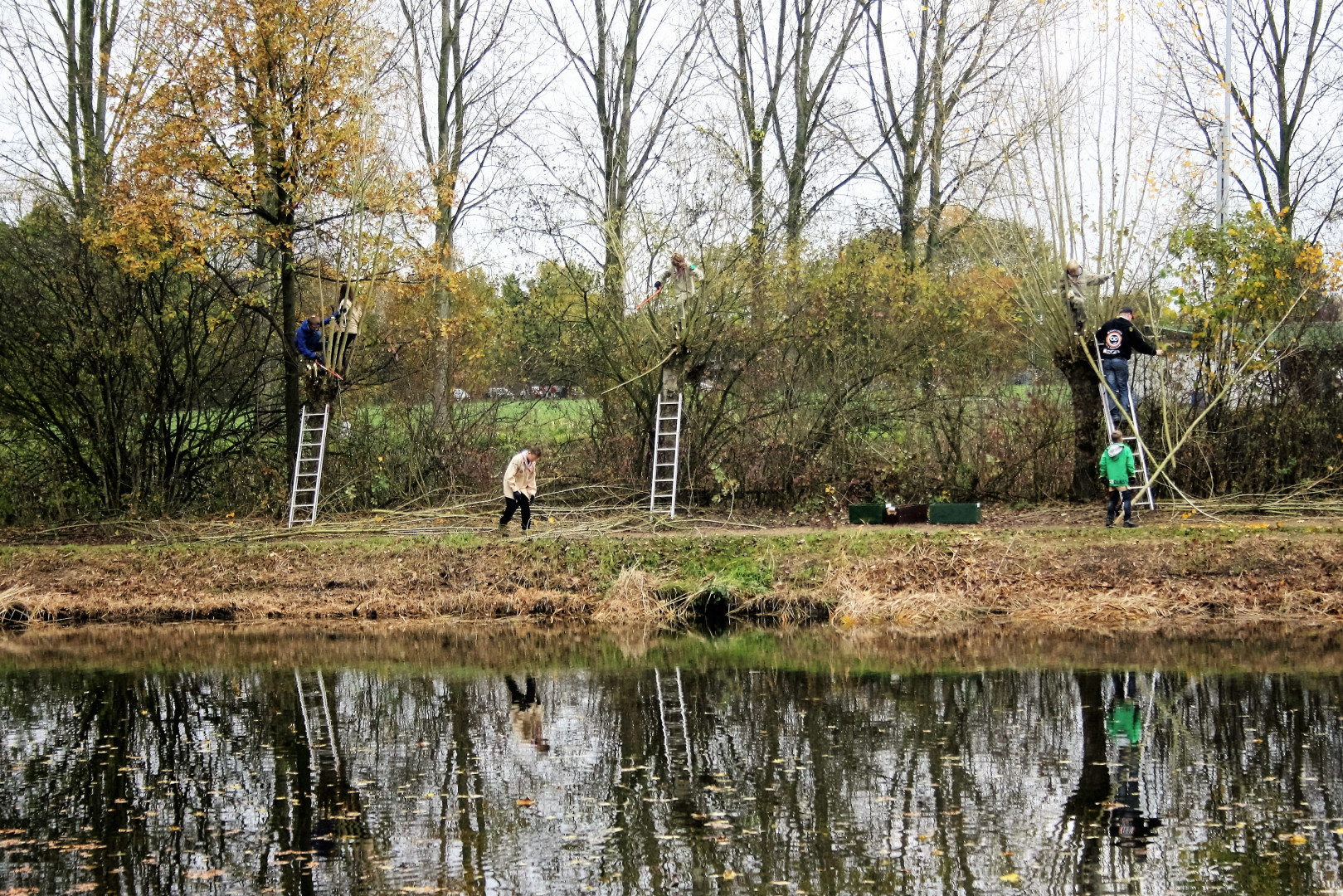 De kinderen die al wat langer lid zijn van de groep kennen het inmiddels wel, een dag buiten buffelen met snoeischaren en zagen, wilgen knotten, stukken bos uitdunnen en meestal ook de weergoden weerstaan. Voor onze leden is het gewoon een onderdeel van ons programma. Daarom gaan we ervan uit dat iedereen meedoet.